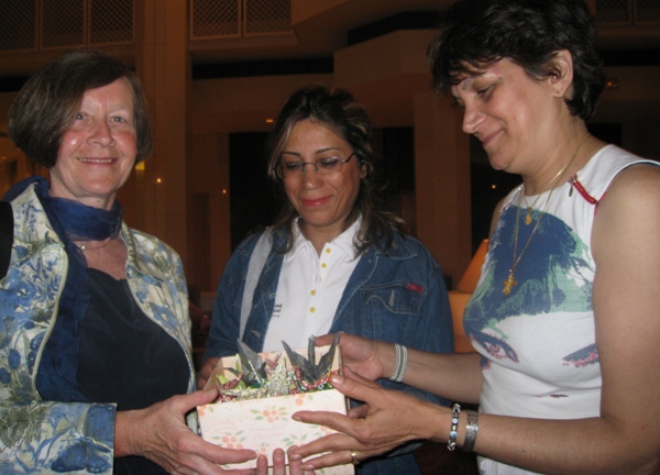 Ora McGuire is an 85 year old resident of Walpole, Massachusetts, USA whose spiritual contribution to world peace is to make paper cranes using Japanese origami technique. She gives a peace crane to most everyone she meets and tells them the story of Sadako.